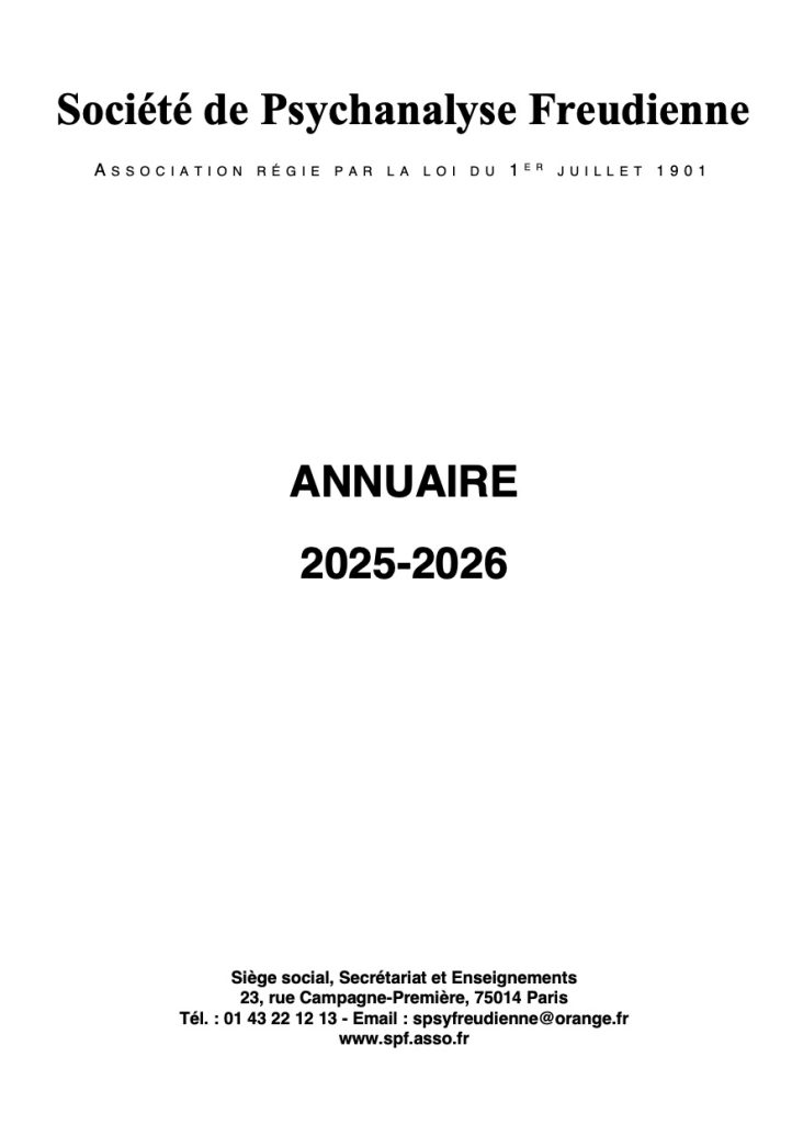Cliquer sur le lien ci-dessous pour consulter l’annuaire des membres de la Société de Psychanalyse Freudienne :